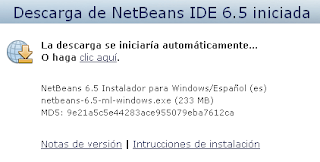 La descarga del programa puede realizarse desde su página oficial www.netbeans.org. En ella se puede encontrar un enlace en la siguiente imagen para realizar la descarga:
