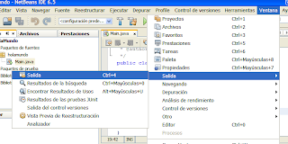 Pero si hay errores en el código fuente éstos se mostrarán en la ventana de Salida que se abre en la parte inferior derecha. Al detectarse los errores se abre automáticamente esa pestaña, pero se puede especificar que se muestre desde el menú Ventana > Salida > Salida. La pequeña X que aparece en el título de la pestaña Salida permite cerrarla.