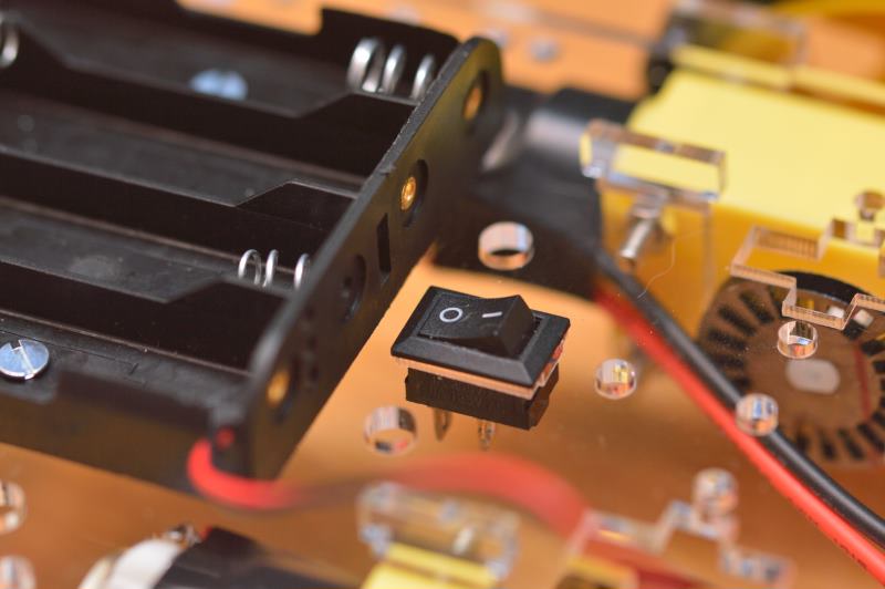 Puedes dejar colocado ya si quieres el interruptor en el hueco de la parte central del chasis. Posteriormente se harán todas las conexiones del cableado.