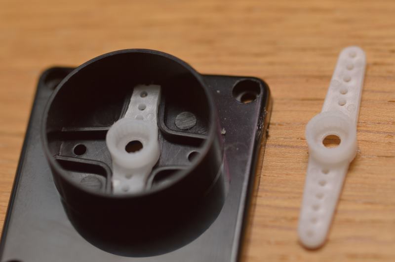 Introduce el eje del servo-motor dentro de la parte central del accesorio blanco que acabas de colocar.