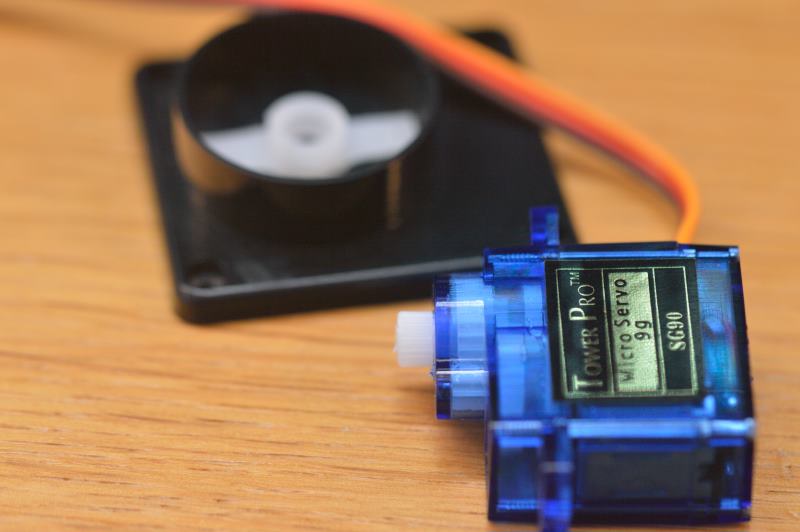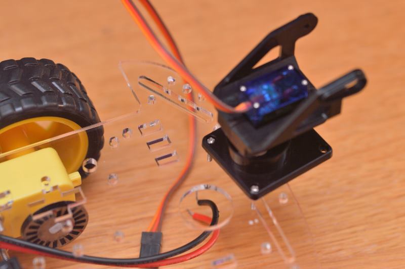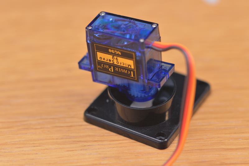 Debes asegurarte de que el servo-motor se ha colocado de manera que puede hacer el giro de 180 grados correctamente, es decir, de un lado al otro del soporte.