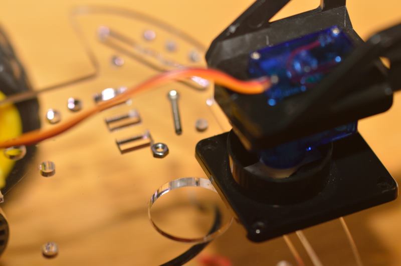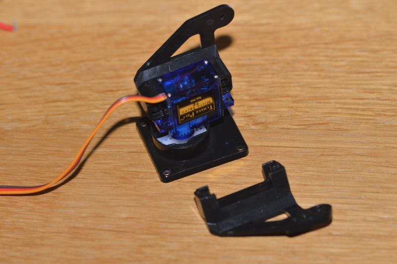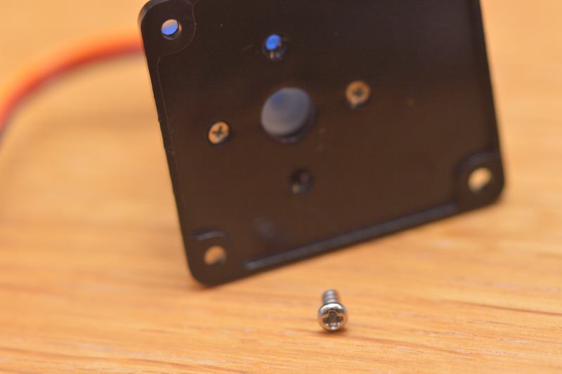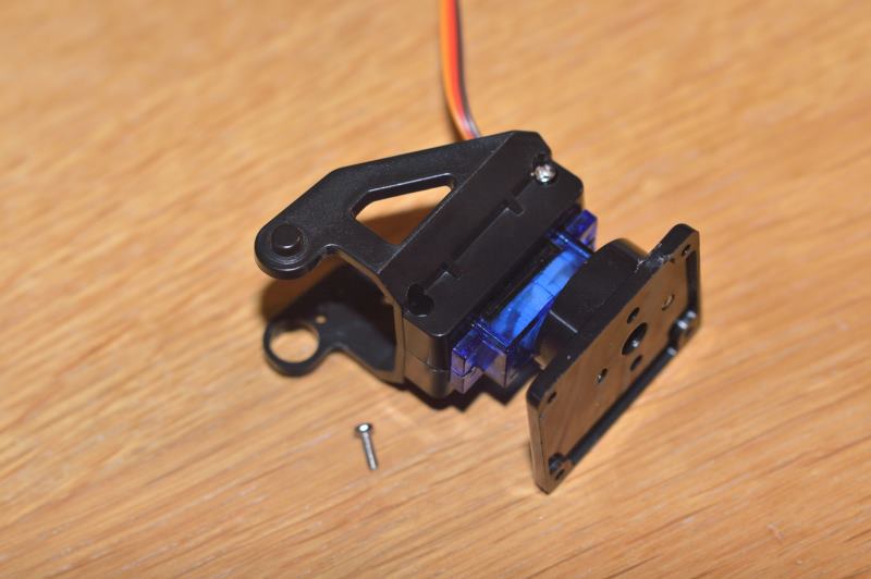 Utiliza un par de tornillos de los más pequeños que vienen con el soporte del servo-motor para fijarlo desde la parte trasera.