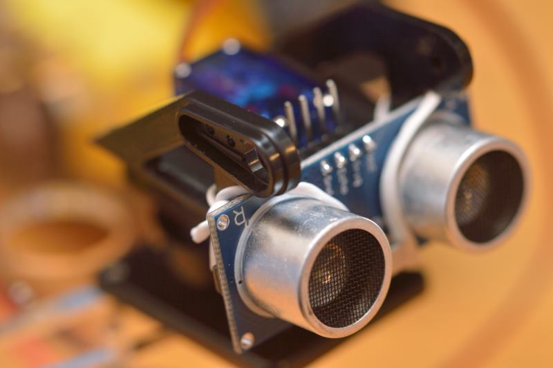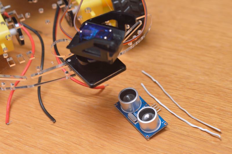 Para montar el sensor de proximidad por ultrasonidos (HC_SR04) tampoco hay una manera precisa de montarlo, así que hay que echar mano de nuevo a la inventiva y usar, por ejemplo, un par de sujeta-cables o algo parecido.