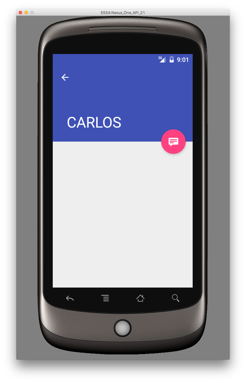 El primer uso que se va a hacer de los datos contenidos en el objeto obtenido será mostrar en el título uno de sus atributos. En este ejemplo se va a mostrar el alias de la persona. Así que se ha indicado el siguiente código unas líneas más abajo, una vez que se ha obtenido una referencia al barra de la pantalla (toolbar_layout)