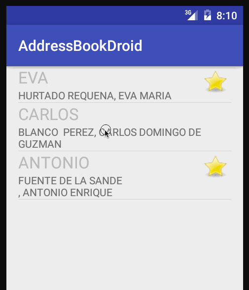 Ten en cuenta que debes crear una nueva clase Java para cada Fragment asociado al contenido de cada pestaña y, a su vez, un layout asociado a cada Fragment con la estructura de pantalla. Lo más sencillo puede ser copiar la clase xxxxxDetailFragment y el layout fragment_xxxxx_detail tantas veces como pestañas se quiera tener, y luego personalizarlo como se desee. En este ejemplo se han creado las clases PersonDetailFragment2 y PersonDetailFragment3, de las cuales se crean objetos en el switch del método getItem() del siguiente código.