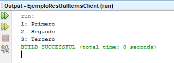 public class EjemploRestfulItemsGet { public static void main(String[] args) { try { // Crear una conexión con la URL del Servlet String strConnection = "http://localhost:8080/EjemploRestfulItems/RestItems"; URL url = new URL(strConnection); URLConnection uc = url.openConnection(); HttpURLConnection conn = (HttpURLConnection) uc; // La conexión se va a realizar para poder enviar y recibir información // en formato XML conn.setDoInput(true); conn.setDoOutput(true); conn.setRequestProperty("Content-type", "text/xml"); // Se va a realizar una petición con el método GET conn.setRequestMethod("GET"); // Ejecutar la conexión y obtener la respuesta InputStreamReader isr = new InputStreamReader(conn.getInputStream()); // Procesar la respuesta (XML) y obtenerla como un objeto de tipo Items JAXBContext jaxbContext = JAXBContext.newInstance(Items.class); Unmarshaller jaxbUnmarshaller = jaxbContext.createUnmarshaller(); Object response = jaxbUnmarshaller.unmarshal(isr); isr.close(); // Convertir a la clase Items el objeto obtenido en la respuesta Items items = (Items)response; // Como ejemplo, se mostrará en la salida estándar alguno de los datos // de los objetos contenidos en la lista que se encuentra en items for(Item item : items.getItemsList()) { System.out.println(item.getId() + ": " + item.getAstring()); } } catch (JAXBException ex) { Logger.getLogger(EjemploRestfulItemsGet.class.getName()).log(Level.SEVERE, null, ex); } catch (IOException ex) { Logger.getLogger(EjemploRestfulItemsGet.class.getName()).log(Level.SEVERE, null, ex); } } }