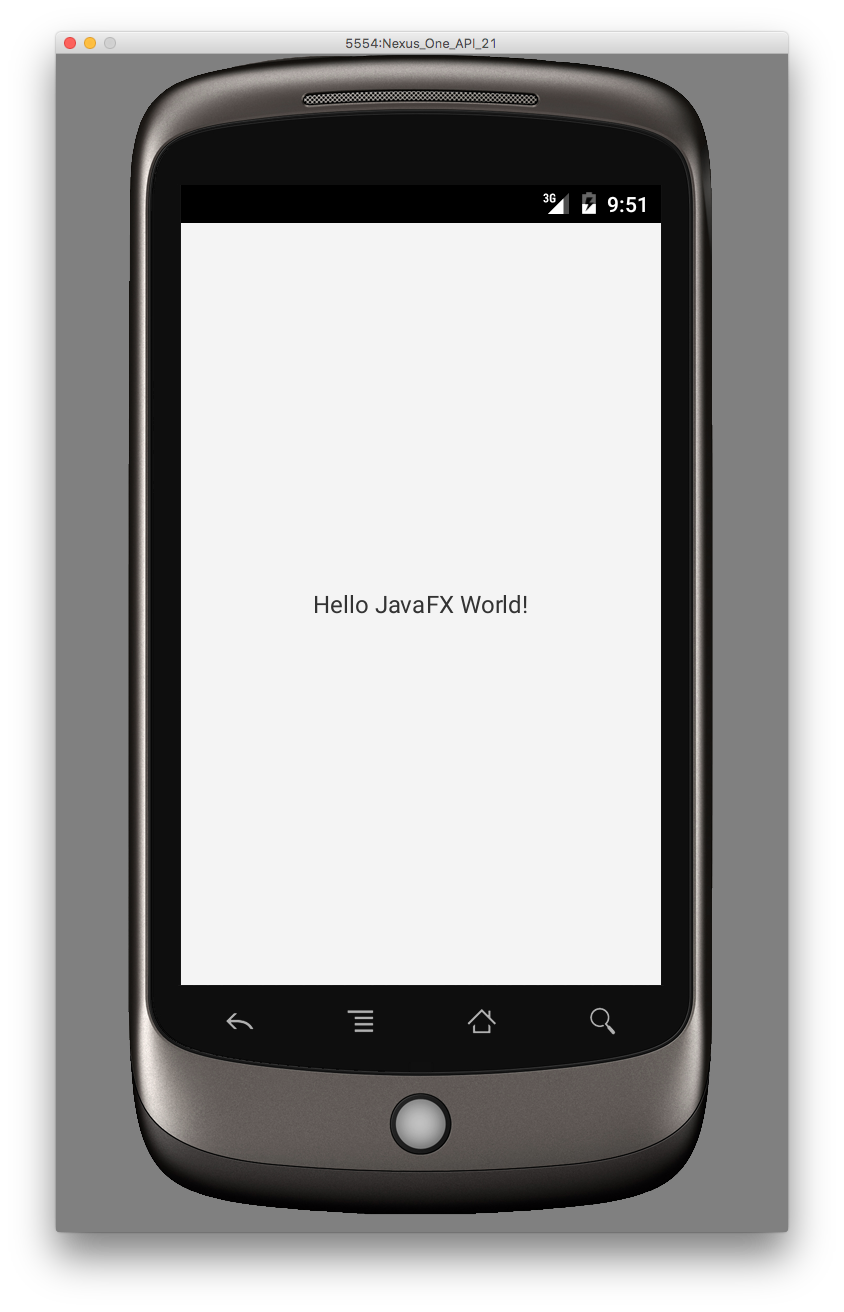 Se ha conseguido ejecutar también en un dispositivo virtual, pero sólo siendo configurado con una imagen del sistema de tipo ARM. Con una imagen del sistema de tipo Intel se ha obtenido el error: INSTALL_FAILED_NO_MATCHING_ABIS. El problema es que la ejecución de un dispositivo virtual de tipo ARM se ejecuta mucho más lento que el Intel al no usar la aceleración por hardware. Ver comentarios sobre este problema: https://bitbucket.org/javafxports/android/issues/65/emulator