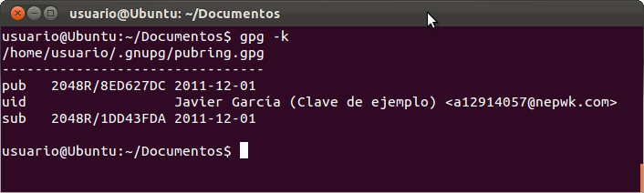 usuario@Ubuntu:~/Documentos$ gpg --gen-key